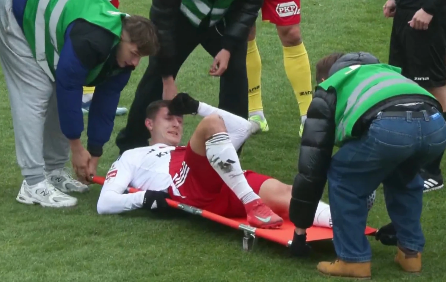 Fabian Piasecki biegł w kierunku daleko zagranej piłki od partnera w pole karne gospodarzy. Nieoczekiwanie, bez kontaktu z przeciwnikiem, padł na murawę.Popularne