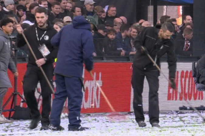 Rozpoczęcie hitowego spotkania Eredivisie, w którym Feyenoord podejmuje PSV Eindhoven, zostało opóźnione o kilkanaście minut. Było to efektem wylądowania na murawie sporej ilości konfetti.