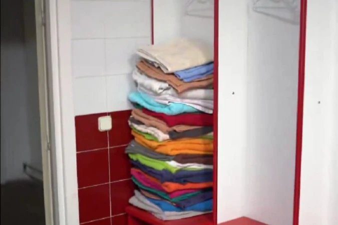- W każdej szatni jest miejsce dla trenerów. Musimy je wam pokazać. [...] Jak tutaj spojrzymy, to możemy się poczuć jak na imprezie w latach 80. Zastanawialiśmy się, gdzie tu się włącza lampę. Zagadka rozwiązała się łatwo. Tu nie da się światła włączyć. Tu nie lampy. Trochę światła z korytarza wpada - widzimy w materiale.