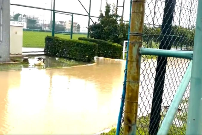 W Turcji 🇹🇷 "troszkę" popadało. Tak dziś wygląda obiekt w Belek na którym miał odbyć się mecz sparingowy @MotorLublin - @FKVardar. Kluby od rana poszukują zastępczego boiska, ale prognozy są bardzo niekorzystne... pic.twitter.com/EuXJqoggjO